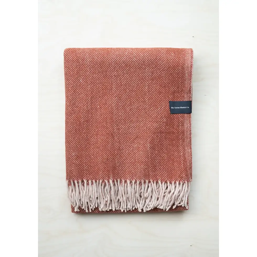 RECYCLED WOOL BLANKET IN RUST HERRINGBONE